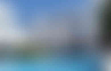 The whole complex is insane! Beautiful, classic white and blue greek buildings, with a gorgeous pool area with hammocks and sun lounges, and behind that were barren mountains with white houses on it and a field with hay barrels! It's so interesting and so beautiful!