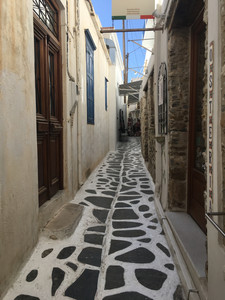 We walked along the beach and realised that we’d ended up in the town of Naxos, so went in to have a little look around. It is gorgeous and exactly what we had imagined. Beautiful white and blue buildings with small pedestrian streets made of stone and white painted concrete. It was amazing!
